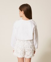 Girls' rose-effect fabric shorts with satin waistline. Concealed side zip fastening, metal logo plate, cotton muslin lining, straight fit.