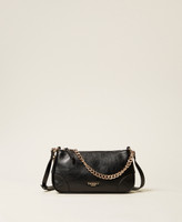 Semi-polished faux calfskin leather shoulder bag with a slightly textured surface. Offers the double option of short chain handle, which can be worn over the shoulder, and long adjustable faux leather shoulder strap, for cross-body wear. Zip closure and gold-tone lettering logo on the front panel. Lining and internal pockets.