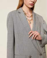 - 43% polyester 34% viscose 21% wool. Lining: 68% acetate 32% polyester