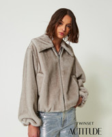 Actitude collection faux mink short jacket with wing collar, front metal zip fastening, gathered hem and cuffs, lining, loose fit.
