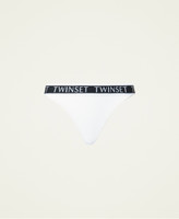 Doubled micromodal g-string with logo elastic at the waist, small logo plate on the back.