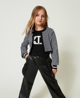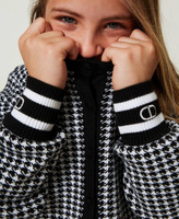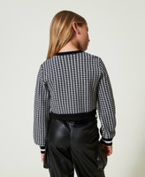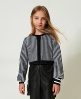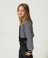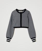 Girls’ jacquard knit jacket made from stretch viscose with houndstooth pattern. Round neck, long sleeves, wide ribbed cuffs with stripes and embroidered Oval T logo, fastened with buttons covered with tonal fabric, regular fit.