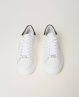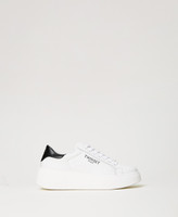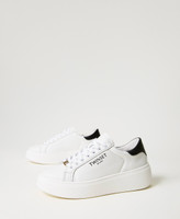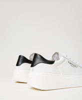 Leather platform trainers with contrasting back, lettering logo on the side and rubber sole.