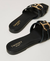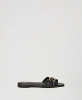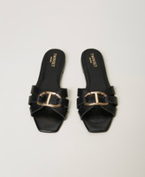 Flat elegance that elevates your style in a flash. Choose these leather slides with metal Oval T logo and tunit sole. Perfect any day, they will complete your formal looks in style too.