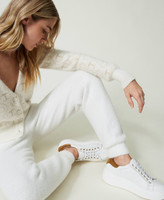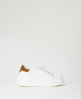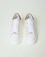 Low top lace-up leather trainers with contrasting heel counter, logo and rubber sole.
