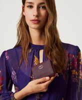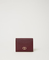 Saffiano print leather-like wallet with metal Oval T, inner compartment with banknote and card holding slots.