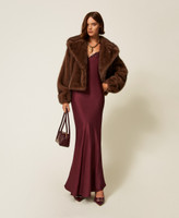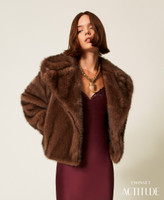 Actitude collection faux mink fur short jacket with wide collar with lapels. Front hook fastening, hem and cuffs gathered with elastic, lining, loose fit.