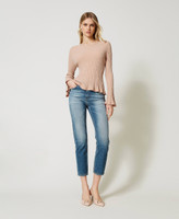 Regular cotton jeans with vintage wash, five pockets, logo rivets and stud.