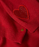 Modal blend knitted scarf featuring heart patch with rhinestones and thread embroidery.