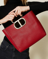 Medium leather-like 'Lila' shopper with wide metal handle in the shape of the Oval T logo, magnet closure. Twinset spreads its message of welcome and kindness in all the world's languages: 'Lila' is the Sanskrit word for an action of freedom and playfulness.