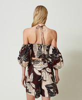 Add the exotic touch of these shorts made from Italian cotton poplin with exclusive Twinset print to your seasonal wardrobe. Loose fitting, with wide elastic band and belt loops at the waist, slant pockets, heart-shaped metal logo at the back and removable belt with plaited three-tone lace and gold-tone spheres. The new base for a myriad of looks, and you can match them with their coordinated shirt or top.
