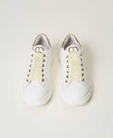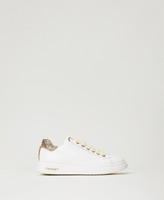 Leather trainers in total white with glitter heel, box sole, rubber sole.