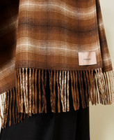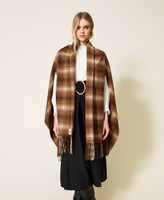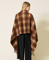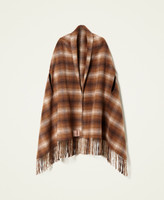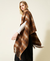 Chequered open poncho made from double wool blend with fringed hem and openings for the arms.
