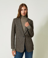 Wool blend blazer with two-tone chevron pattern and sequins, single-button closure and inner lining.