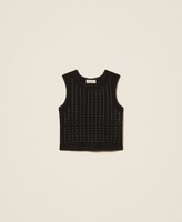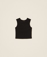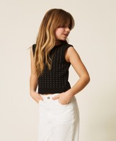 Girls' stretch cotton jersey ribbed top with studs at the front, round neck, fitted.
