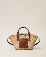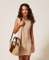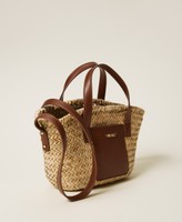 Girls' hand-woven natural straw shopper bag with smooth faux calf nappa leather details. Removable cross-body strap, double handle, flat front pocket, metal lettering logo.