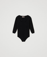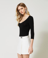 Body sin costuras de punto de viscosa elástica con amplio escote redondo, mangas de tres cuartos y corte ceñido.