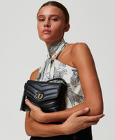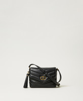 Bolso bandolera Dreamy de confección italiana con suave piel de becerro plena flor italiana, impermeable y resistente a los arañazos, estampado diamantado acolchado con el logo metálico Oval T. Cierre de solapa e imán, correa ajustable de piel para el hombro, borla a juego con detalles metálicos y forro.