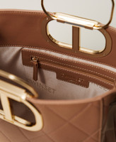 Bolso shopper 'Lila’ efecto piel de becerro acolchado con asa Oval T metálica. Tiene cierre con imán, correa ajustable y extraíble y accesorios en galvanizado color oro. Dentro del logo hay dos anillas que pueden bascular hacia dentro y utilizarse como asas adicionales.