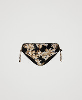 Braguita de baño con estampado floral y cintura bordada en contraste. Cuenta con cordón y lazos ajustables en las caderas y logotipo de corazón trasero.