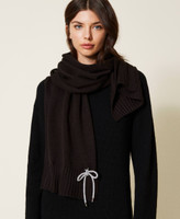 Bufanda de la colección Actitude de punto al derecho con detalle de lazo de strass y parte inferior rematada con canalé.