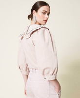 Camisa de la colección Actitude en bull de algodón ligero teñido en prenda, con maxi cuello camisero rematado con volante y tachuelas redondas.