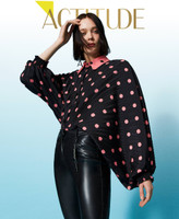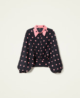 Camisa de la colección Actitude en crepé de China con estampado de lunares con elaboración plisada y cuello en contraste.