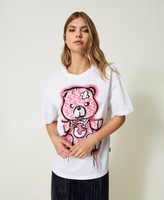 Camiseta oversize en edición limitada de la colección Actitude con estampado digital en colores flúor, cuello redondo y manga corta.