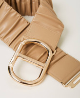 Cinturón bustier fruncido de efecto piel, con elástico interior y cierre con maxilogotipo Oval T.
