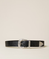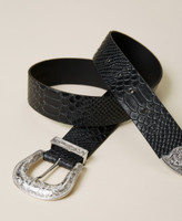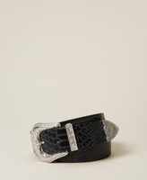 Cinturón de corte regular de Edición Limitada de la colección Actitude, de piel con estampado de pitón y hebilla color gris plomo decorada.