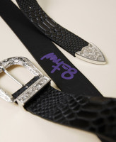 El artista MYFO firma el cinturón de corte regular de piel con estampado de pitón y hebilla color gris plomo decorada. Está personalizado en el interior con el estampado MYFO X Actitude.