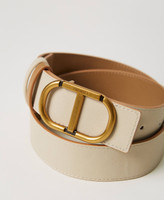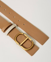 No dejes escapar el cinturón reversible de talle bajo con hebilla-logotipo Oval T de metal y cierre de pasador. Versátil y sofisticada, dará brío a tus conjuntos con vestido o pantalones.
