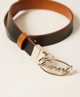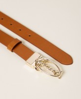 Cinturón reversible para niña de efecto piel con hebilla ovalada y logotipo de letras de metal.