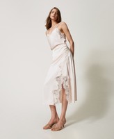 Falda midi de raso y encaje