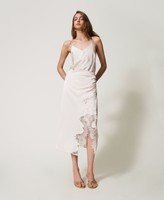 Falda midi de raso con construcción de efecto cruzado. Incrustación de encaje a lo largo de los bordes de la abertura, frunces en el lateral y cierre de cremallera y corchete, de corte holgado.