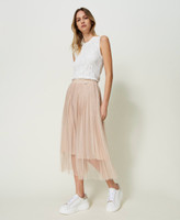 Falda midi de tul plisado con cintura elástica, placa con logotipo, forrada de crepé de China.