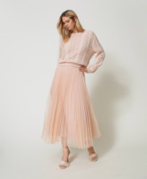 Falda midi de tul plisada