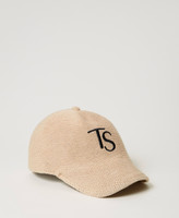 Gorra de béisbol en tejido efecto rafia con logotipo bordado en contraste.