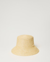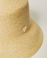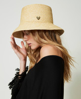 Gorro efecto rafia con ajuste interior y placa con logotipo en forma de corazón.