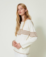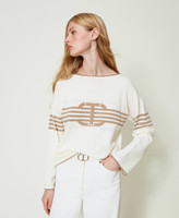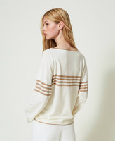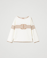 Jersey en mezcla de viscosa con incrustación de rayas y logotipo central en forma de Oval T, escote barco, mangas largas, ribetes en contraste.