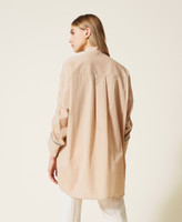 Maxicamisa de algodón de rayas jacquard con cordón de ajuste, puños altos con botones del logotipo y bordado de engastes.