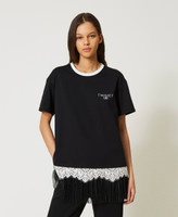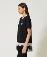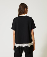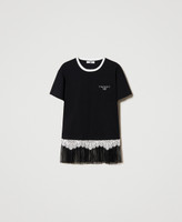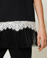 Maxicamiseta con encaje y tul plisado
