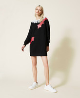 Maxisudadera con estampado Twin Queen en Edición Limitada, cuello de encaje suizo desmontable y vivos acanalados.