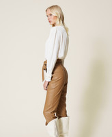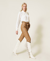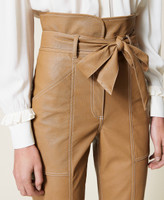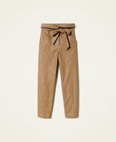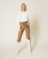 Pantalón de tejido encerado, corte de zanahoria, talle alto, bolsillos aplicados y cinturón a juego.
