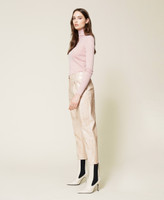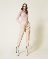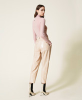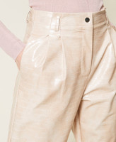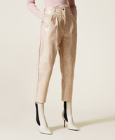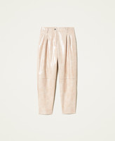 Pantalones de corte de zanahoria en tejido encerado de piel grabada, talle alto, pinzas, cierre con cremallera y botón.