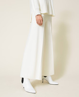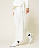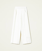 Pantalón palazzo de punto de viscosa elástico con elástico en la cintura, bolsillos laterales y logotipo en relieve.