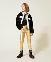 Para un look de efecto sorprendente. No dejes que se te escape este pantalón pitillo de niña con revestimiento de color dorado, cierre con cremallera y botones automáticos, cinco bolsillos, costuras de hilo a juego y logotipo Oval T bordado en el bolsillo trasero. Perfecto para iluminar todos los looks de la temporada.