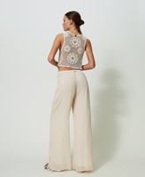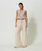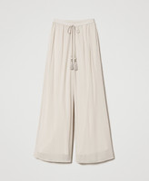 Pantalón palazzo de crespón de georgette de viscosa con cintura elástica, cordón con extremos de borla, forrado.