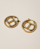 Completa tu look con los pendientes con pasador en galvanizado latón envejecido cobrizo con aro y logotipo Oval T de strass. Lúcelos con el broche a juego para un conjunto con atención al detalle.
