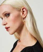 Pendientes de aro con logotipo de Oval T y strass engastados, cierre de perno.